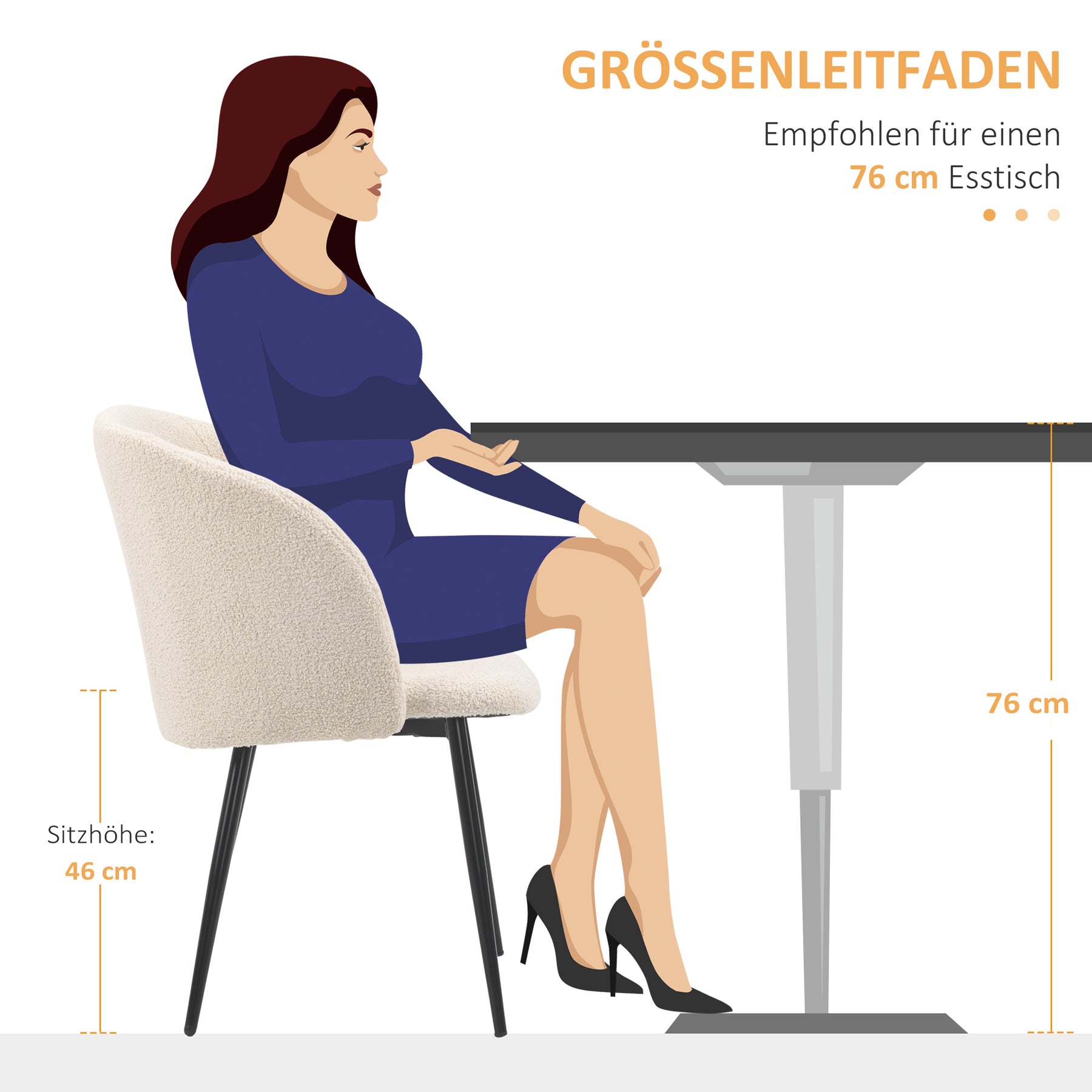 Bring et frisk pust ind i dit hjem med dette sæt af to polstrede stole i lammeuldslook, der tilbyder moderne komfort. Stolenes stålben giver et moderne touch, og det ergonomiske ryglæn tilpasser sig perfekt til kroppens konturer og fremmer en sund siddestilling.