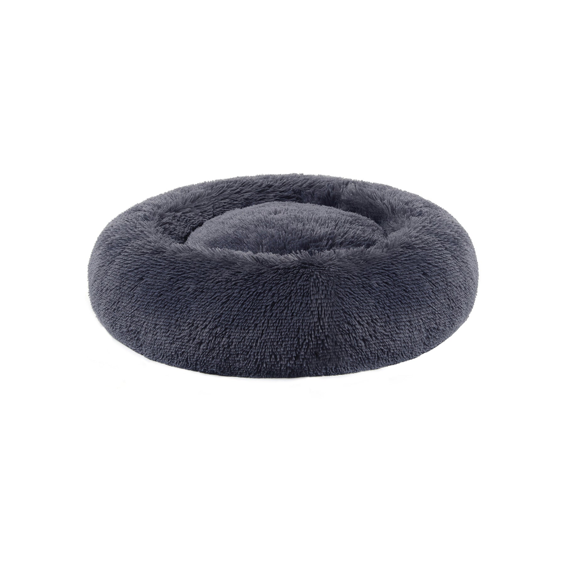Hundeseng, donut-katteseng, blød og beroligende dyreseng med aftageligt, vaskbart betræk, blødt langt plys, 60 cm, mørkegrå