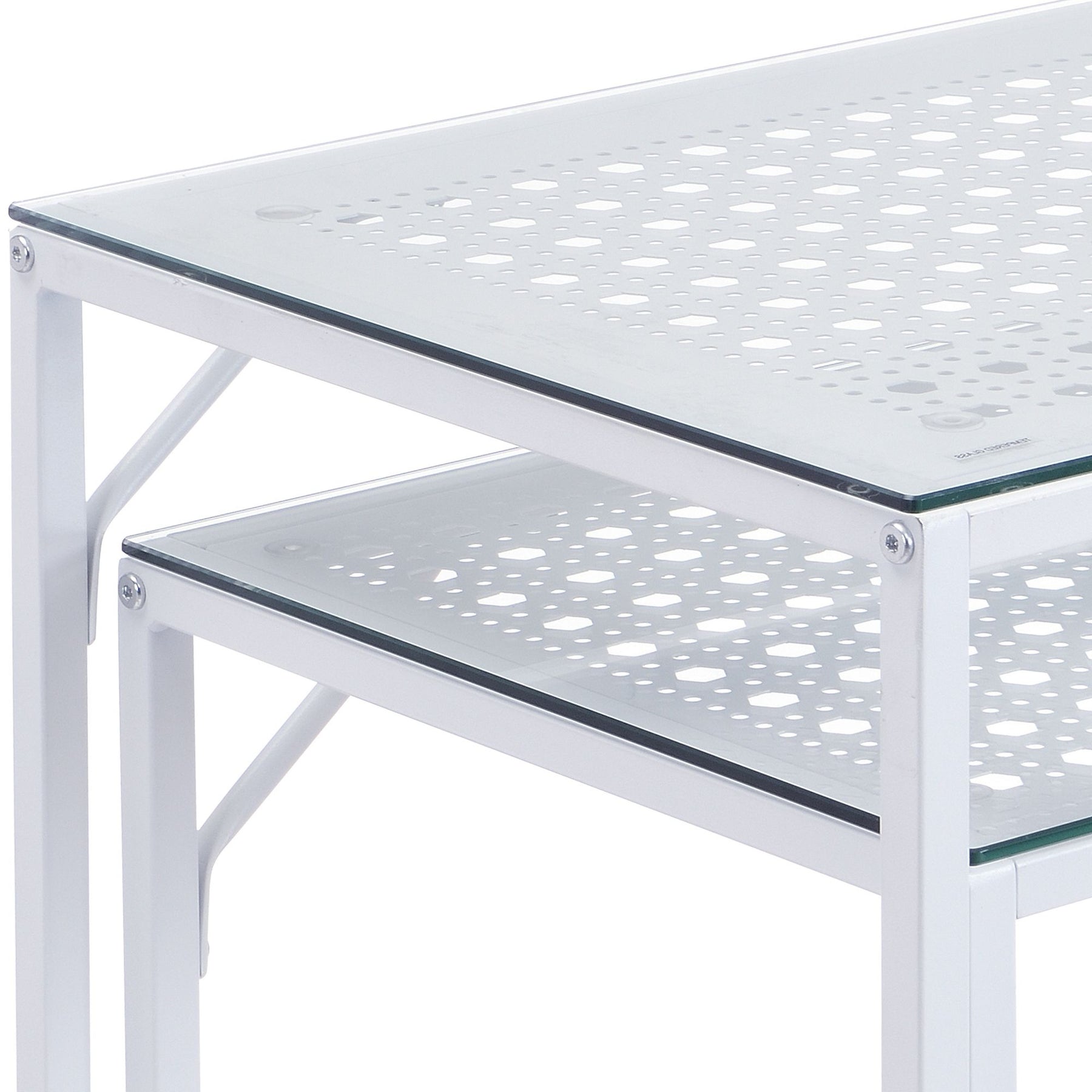 - Delikate metalstel med stilfulde gitterstrukturer under bordpladerne