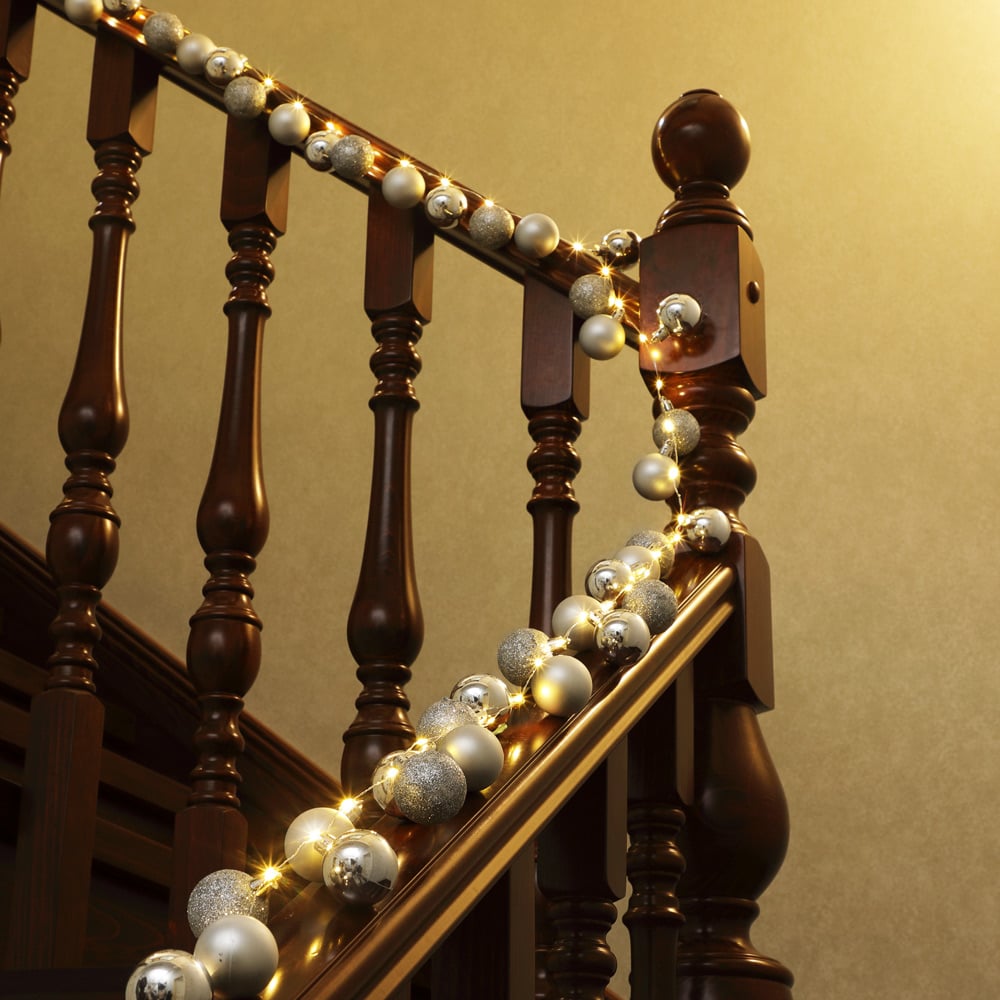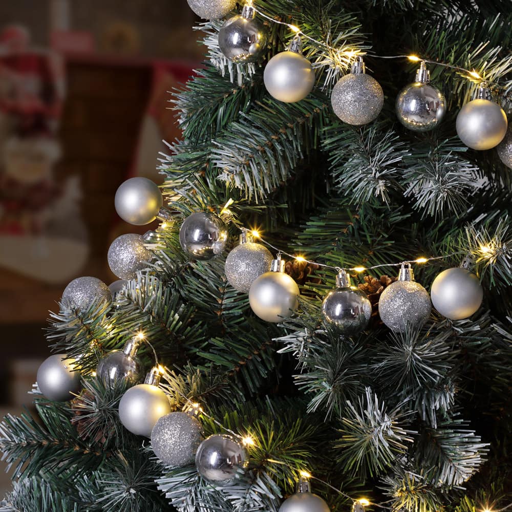 Skab julestemning i dit hjem med denne hyggelige lyskæde med glitrende julekugler i sølvfarvede nuancer.