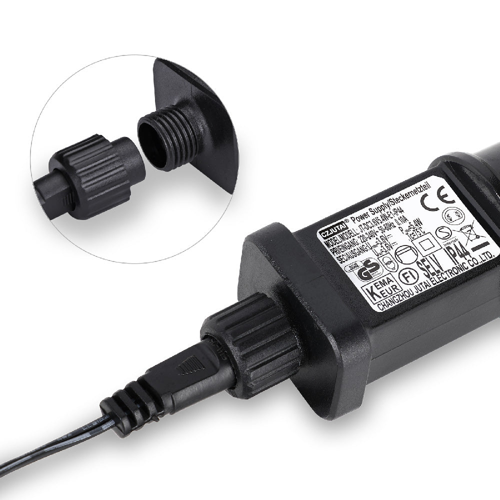 Takket være det robuste hus og beskyttelsesklasse IP44 ( stænkvandsbeskyttelse ) er projektoren også perfekt egnet til udendørs brug . 6/18 timers timeren er særlig praktisk . Efter aktivering lyser spotlyset i 6 timer og slukker derefter automatisk i 18 timer. Dagen efter tænder og slukker juleprojektoren automatisk på samme tid .