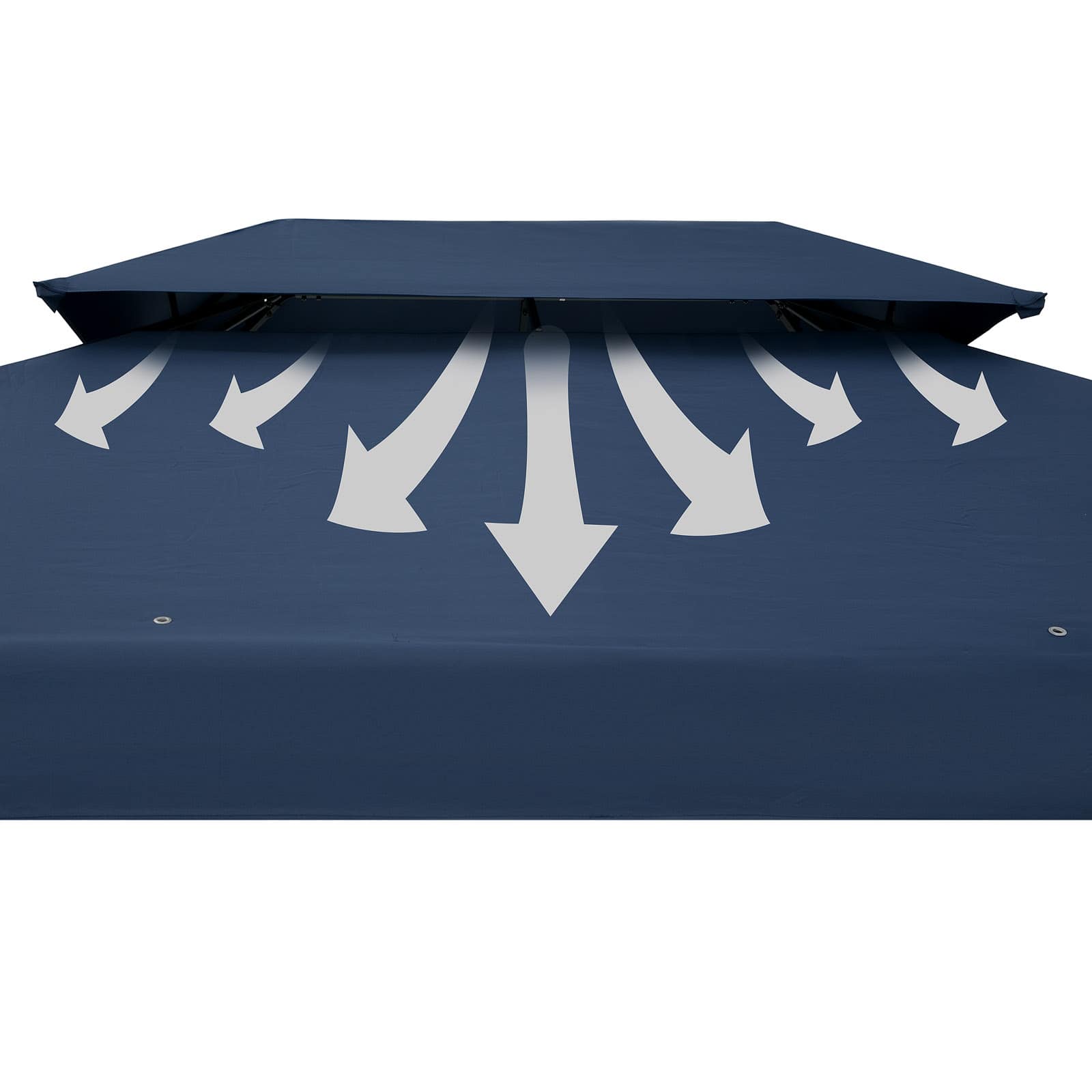 Havepavillonen er udstyret med stabile tagstivere og overdækkede fødder . Metalkonstruktionens pulverbelægning giver beskyttelse mod korrosion . Så du kan nyde dit havetelt i lang tid.