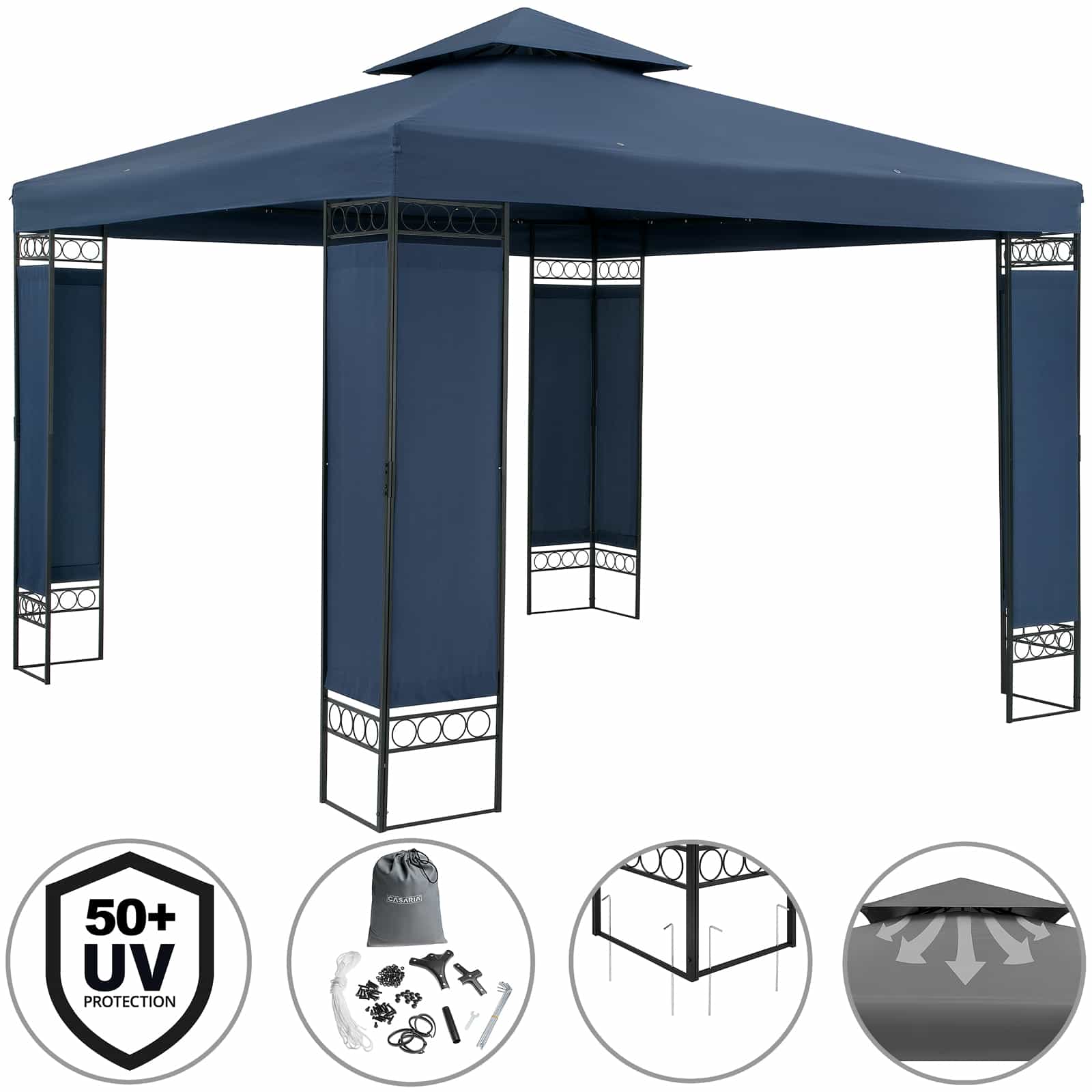 Pavillon havetelt havepavillon Lorca 3x3m metal vandafvisende luksus, farve: blå