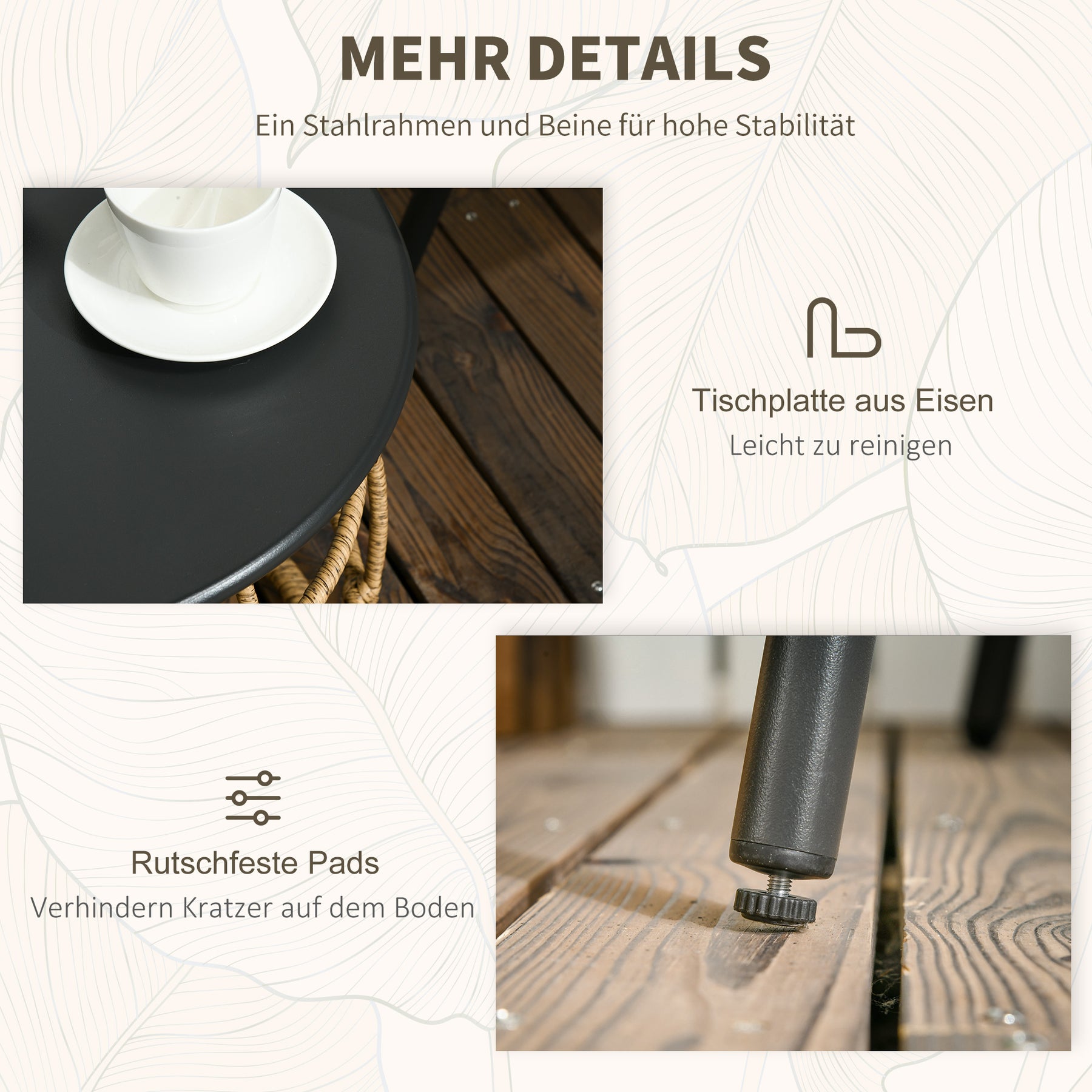 3-Delt vejrbestandigt bistrosæt med 1 sidebord og 2 stole, 62 cm x 65 cm x 78 cm, sand og mørkegrå