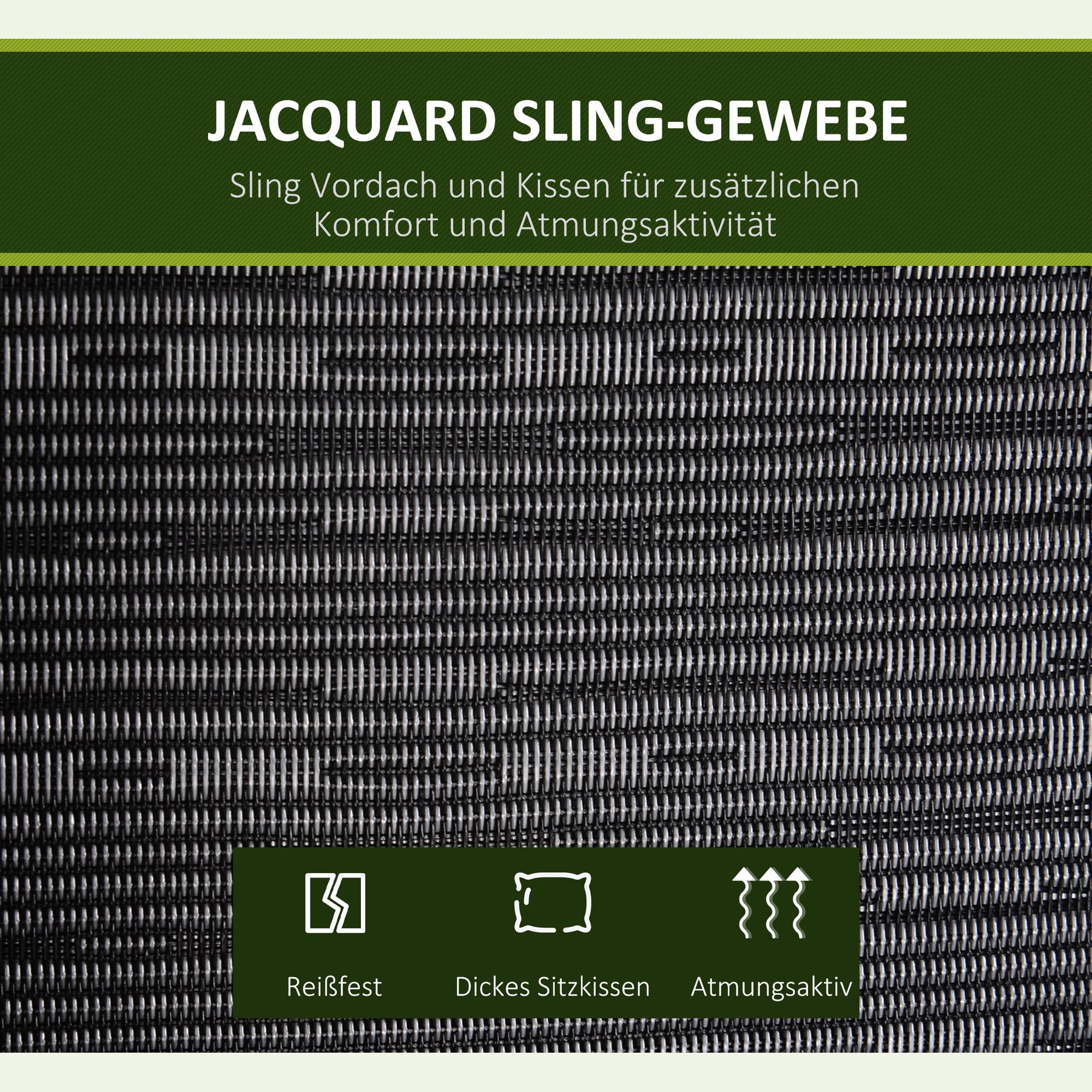 Nyd det gode vejr med venner eller familie på denne havegynge. Bænken har plads til tre personer, og dens elegante design passer perfekt ind i enhver have. Det justerbare soltag sørger for skygge selv på de varmeste dage. Sæt dig ned, nyd brisen og slap af.