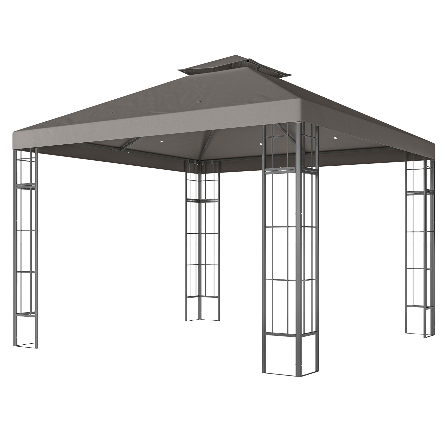 Oplev den perfekte kombination af stil og funktionalitet med denne havepavillon, der er designet til at modstå elementerne. Den elegante, todelte tagkonstruktion sikrer optimal luftcirkulation, mens den plastbelagte baldakin effektivt blokerer for 97% af UV-strålerne, hvilket giver dig en kølig og behagelig skygge på varme dage.