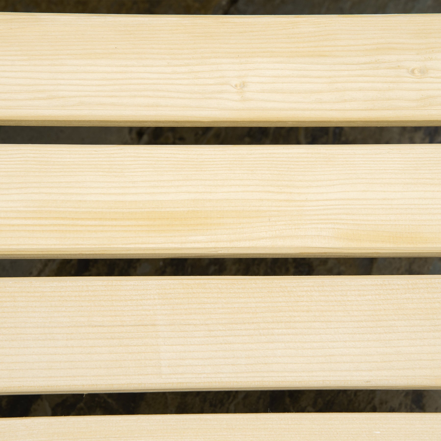 • Sæde lavet af trælameller tillader regnvand at løbe hurtigt væk og er ekstremt nemt at rengøre