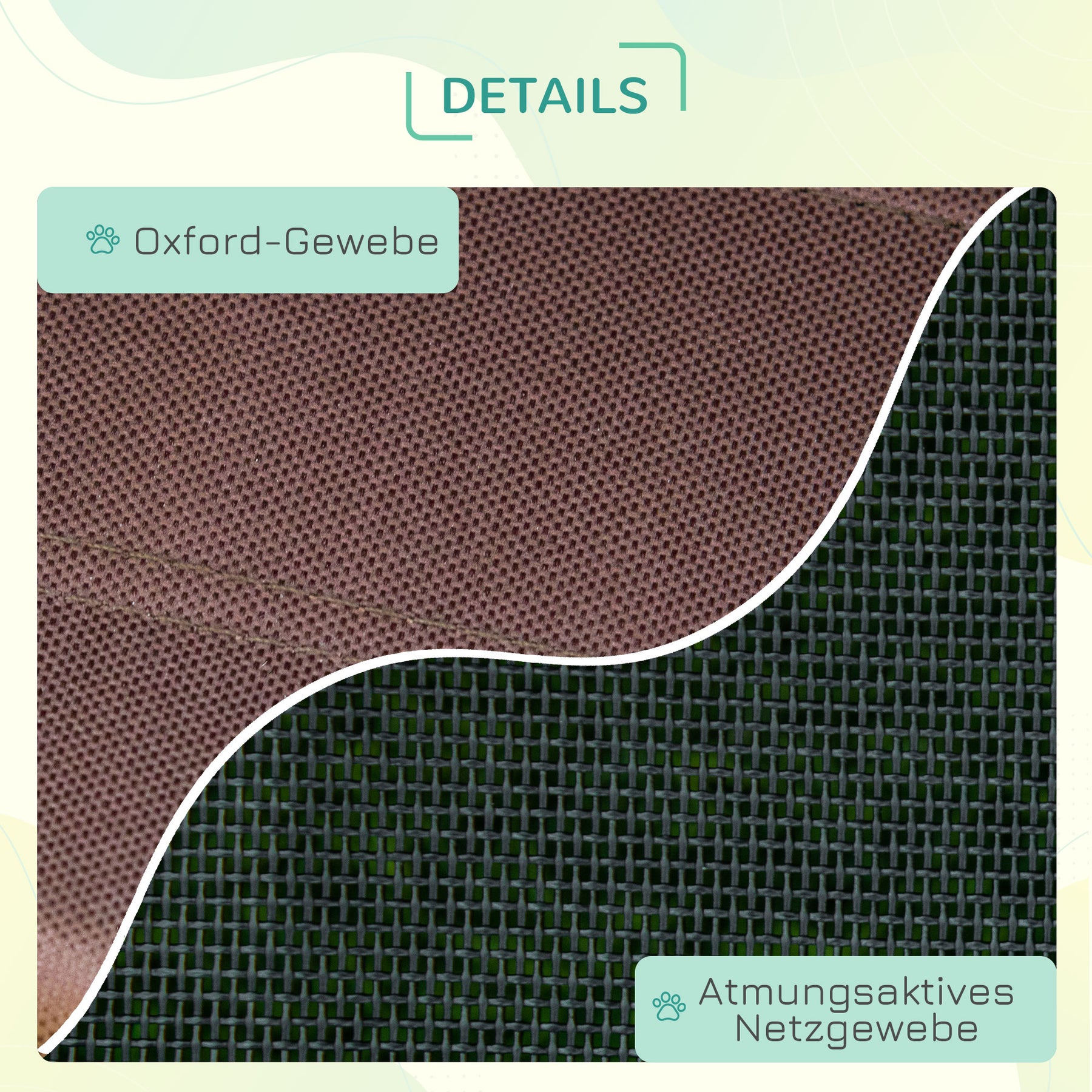 Giv dit kæledyr den ultimative afslapning med en stilfuld hundeseng! Den hævede hundeseng understøttes af fire pulverlakerede metalrør, der er indpakket i åndbart net. Overdækningen giver dit kæledyr behagelig skygge, selv om sommeren, og kan nemt justeres.