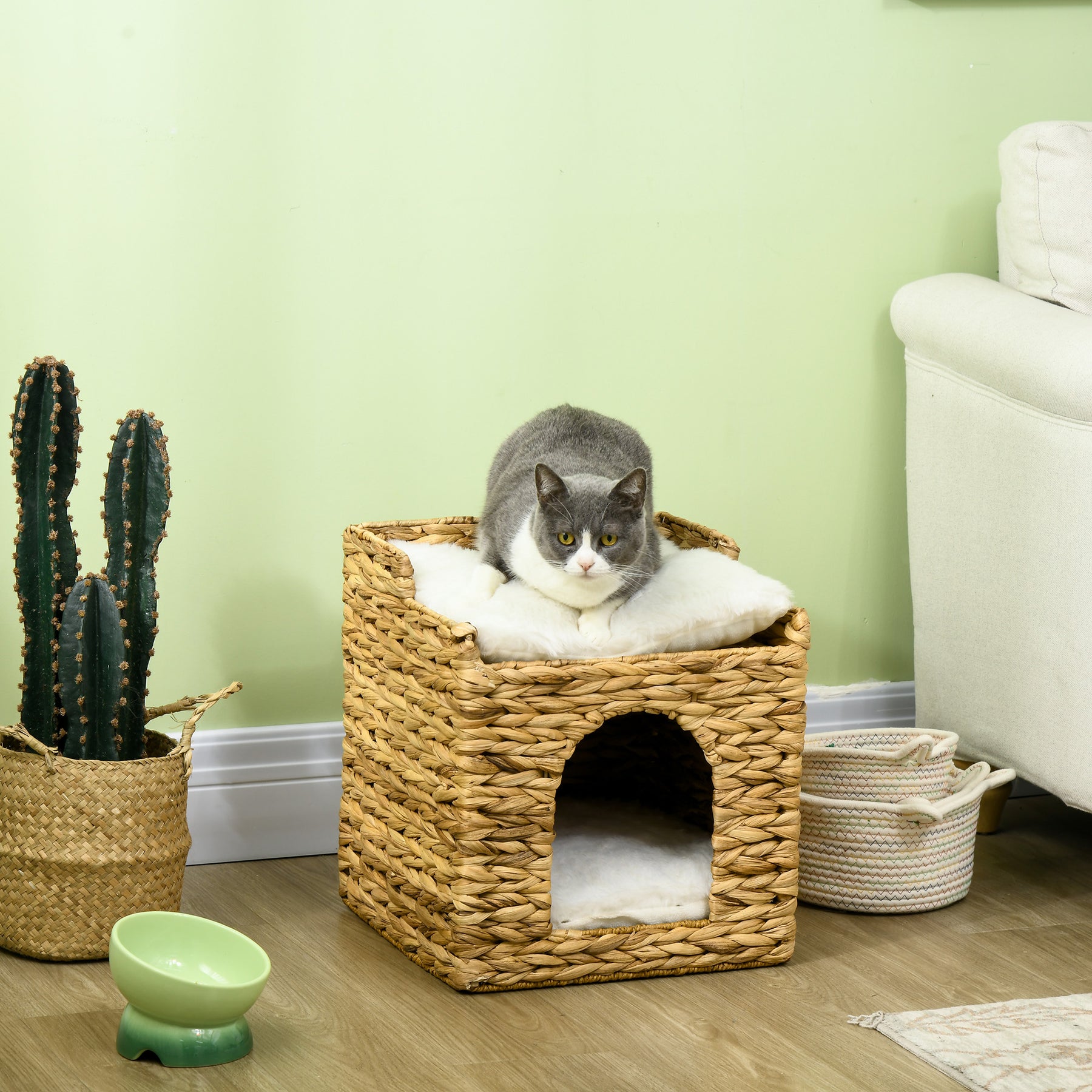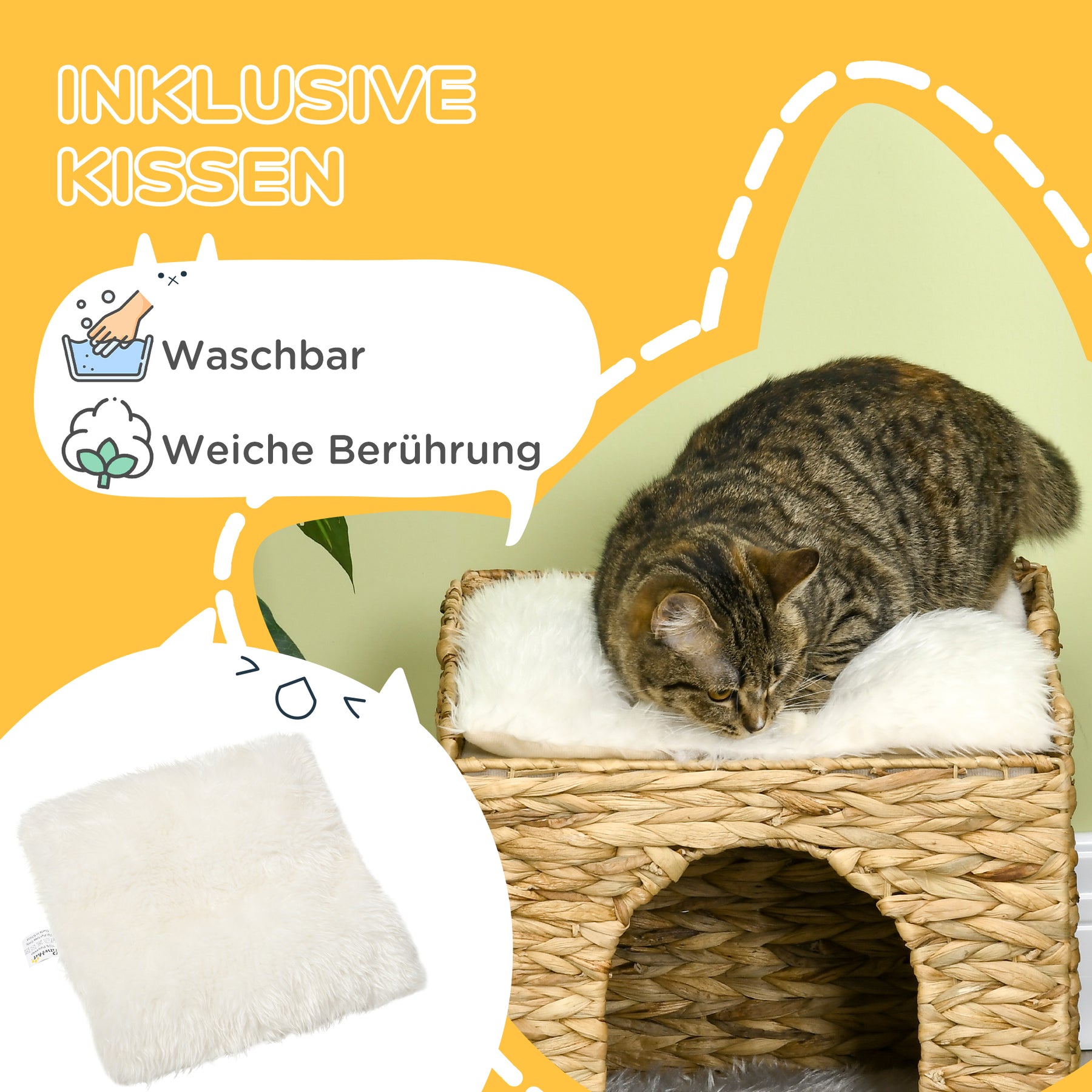 Pakken indeholder: 1 x kattehus i rattan, 1 x instruktioner.