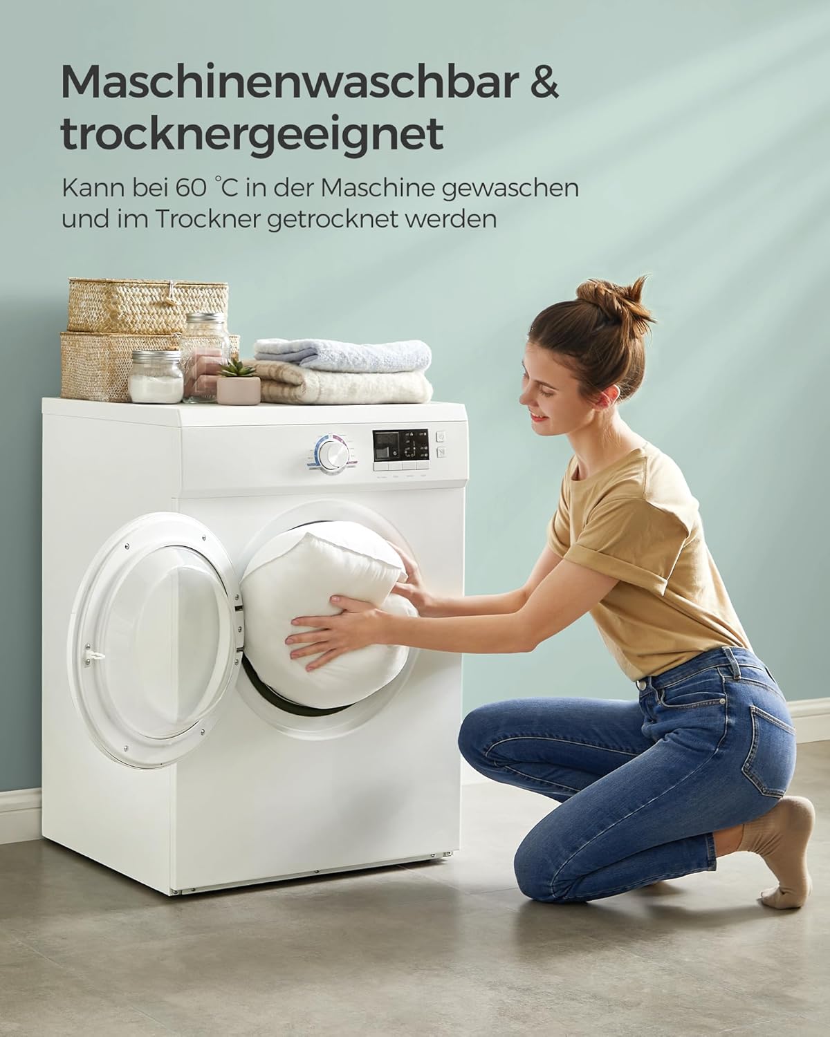 Hele puden kan maskinvaskes og tørres ved 60°C, hvilket sikrer fuld hygiejne uden at gå på kompromis med komforten.