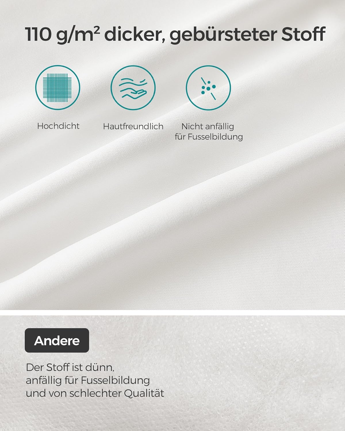 Betrækket er lavet af et blødt, børstet polyesterstof på 110 GSM, der er behageligt at røre ved og bidrager til en bedre søvnkvalitet. Stoffet laver kun minimal lyd, når du vender dig om i søvne.