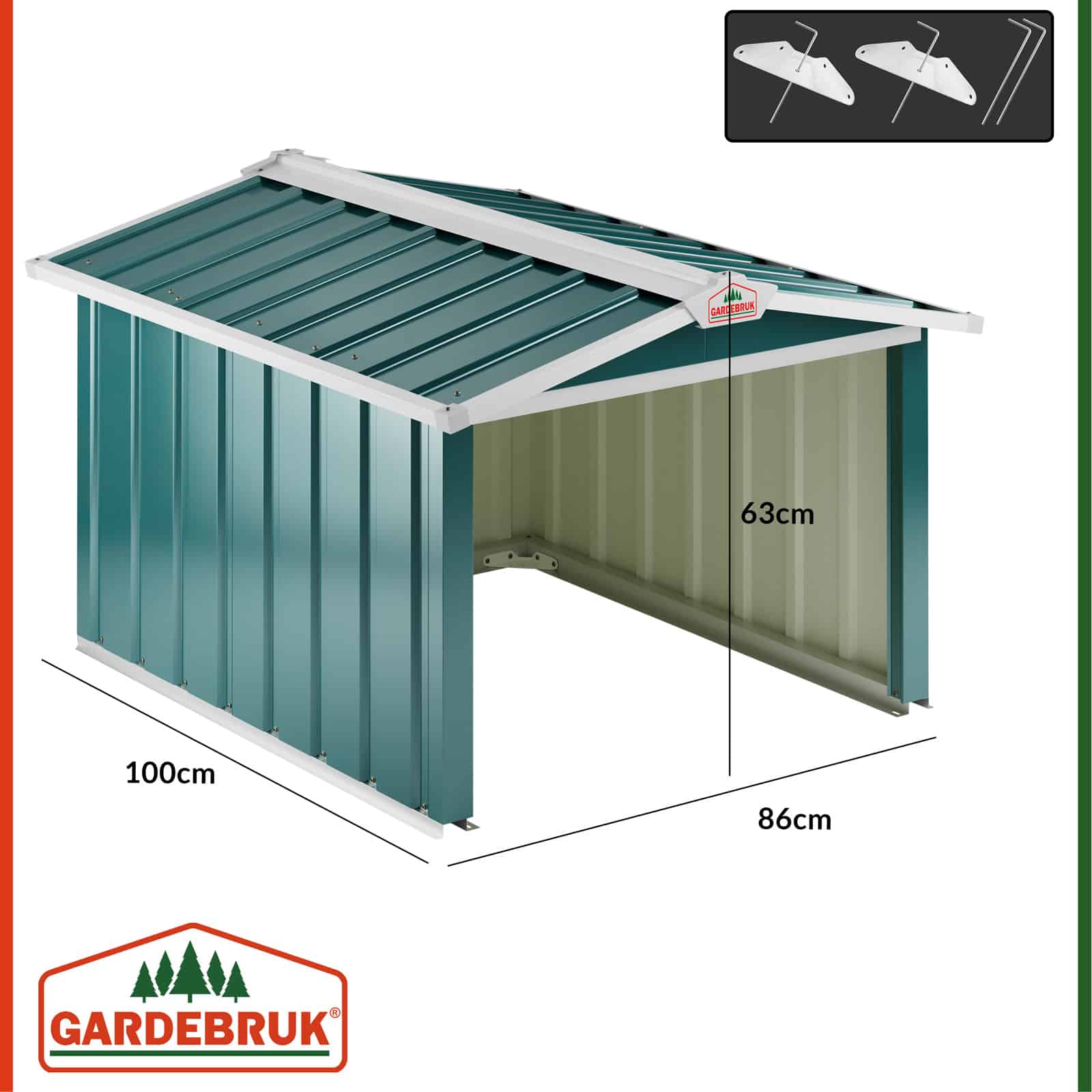 • Mål med sadeltag (LxBxH): 86x100x63/51cm