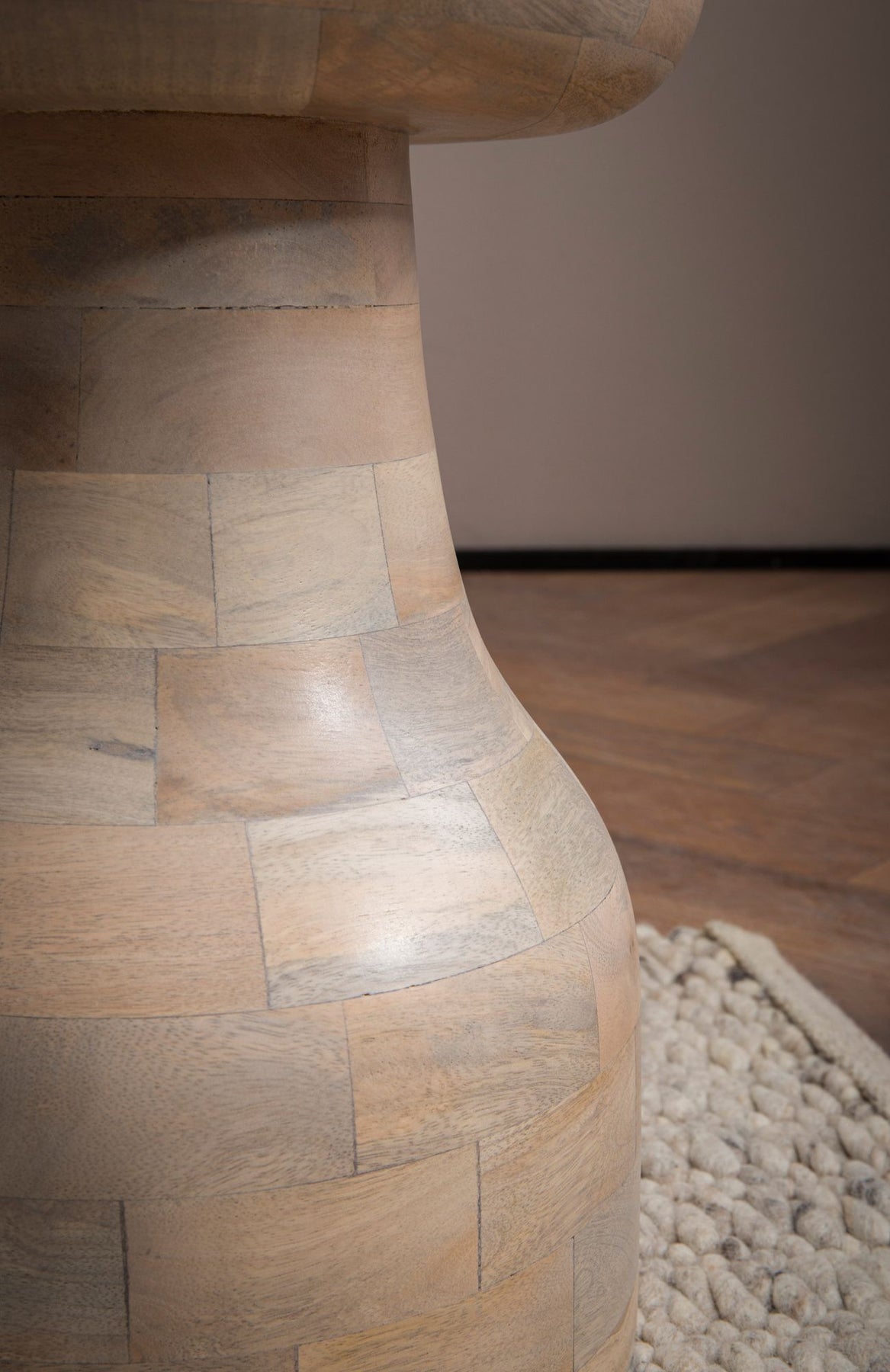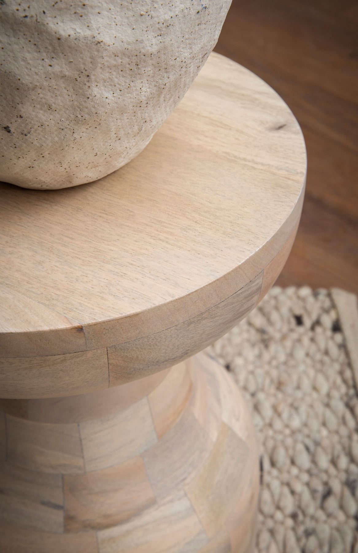 Sidebord i mangotræ, massivt, naturligt bleget, 30x30x42,5 cm, lille lysebrunt rundt sidebord, moderne stuebord, sofabord, højt plantebord