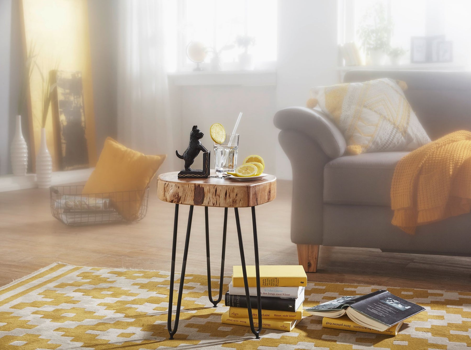 Håndlavet Hvert bord er unikt. Materiale: Sidebord: Massivt akacietræ; Bordben: Metal. Da dette er et håndlavet naturprodukt, kan der forekomme variationer i farve eller tekstur. Fra ansvarlige kilder: Bæredygtighed i de anvendte materialer. Plejeanvisning: Rengør overfladen med en lunken, fugtig bomuldsklud. Brug ikke slibende rengøringsmidler, stærke rengøringsmidler eller våde klude. Yderligere behandling af den naturlige overflade (oliering, voksning) er ikke nødvendig. Leveringsomfang: 1 sidebord
