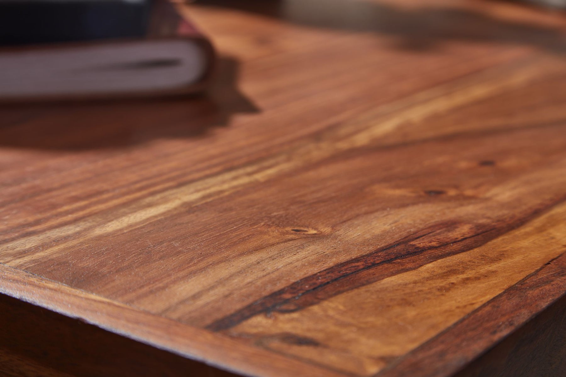 Skrivebord 120x55x78 cm Sheesham massivt træ / forkromet metal, designer kontorbord med skuffe, hjemmekontor bærbar computerbord med opbevaringsplads