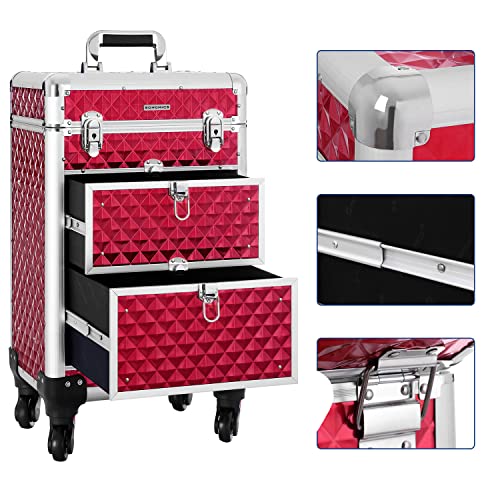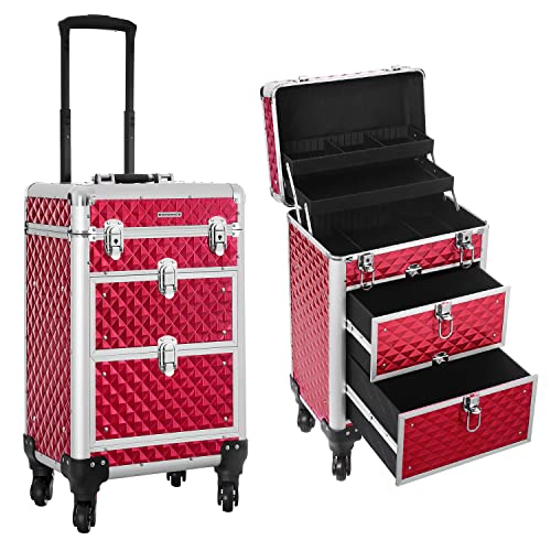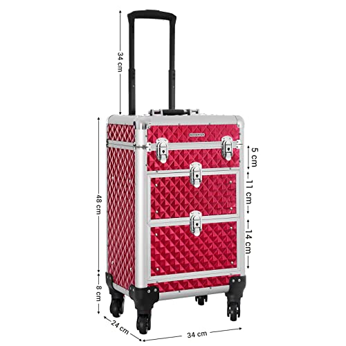 Nem mobilitet: De fire robuste hjul kan drejes 360 grader og er aftagelige. Det gør makeup-tasken nem at flytte rundt på. Hjulene kan fjernes ved at trykke på sideknapperne, hvis nødvendigt.