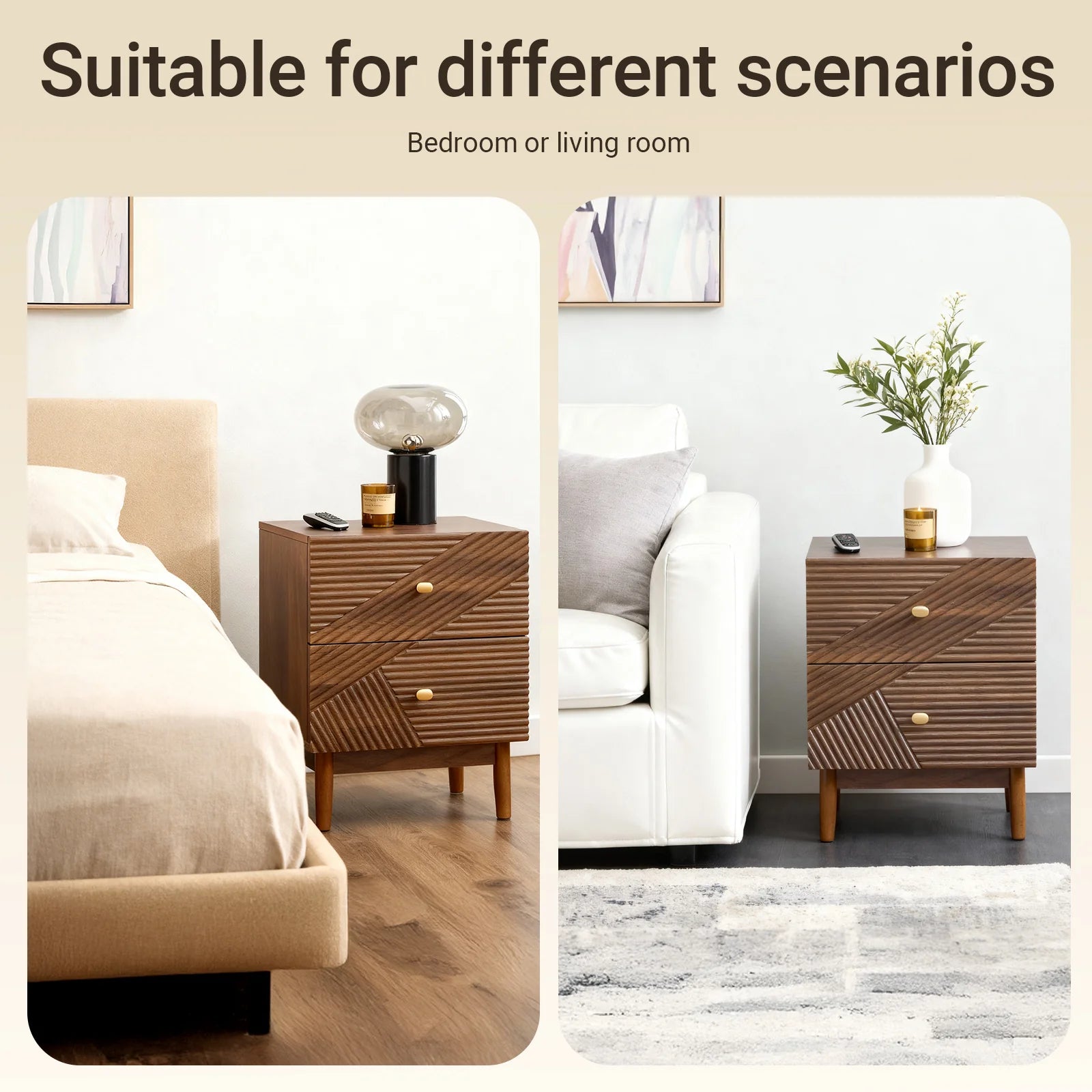 Giv din indretning et personligt touch med natbordets smukke vintage-design og unikke tekstur på skufferne. Men det stopper ikke der: